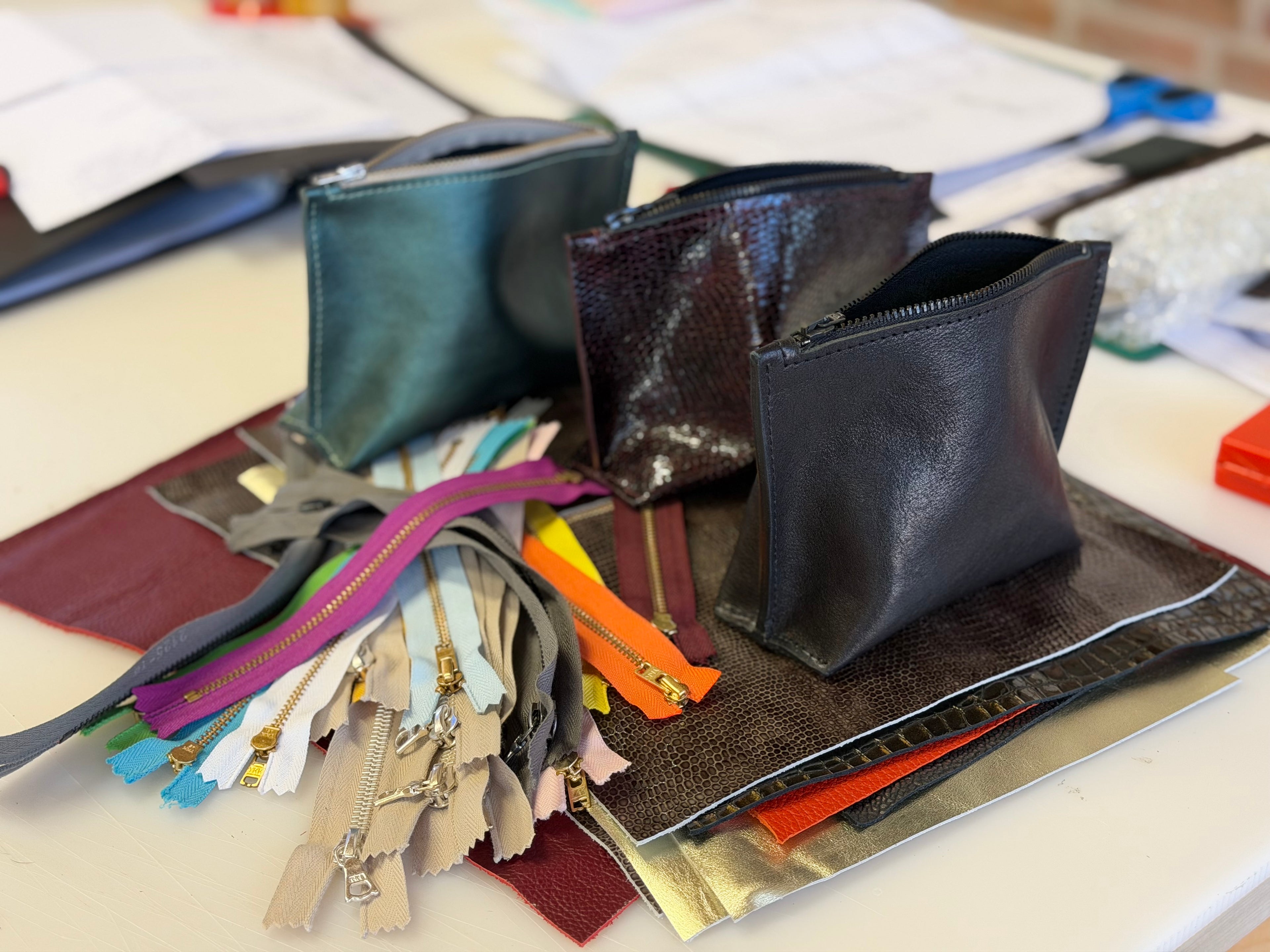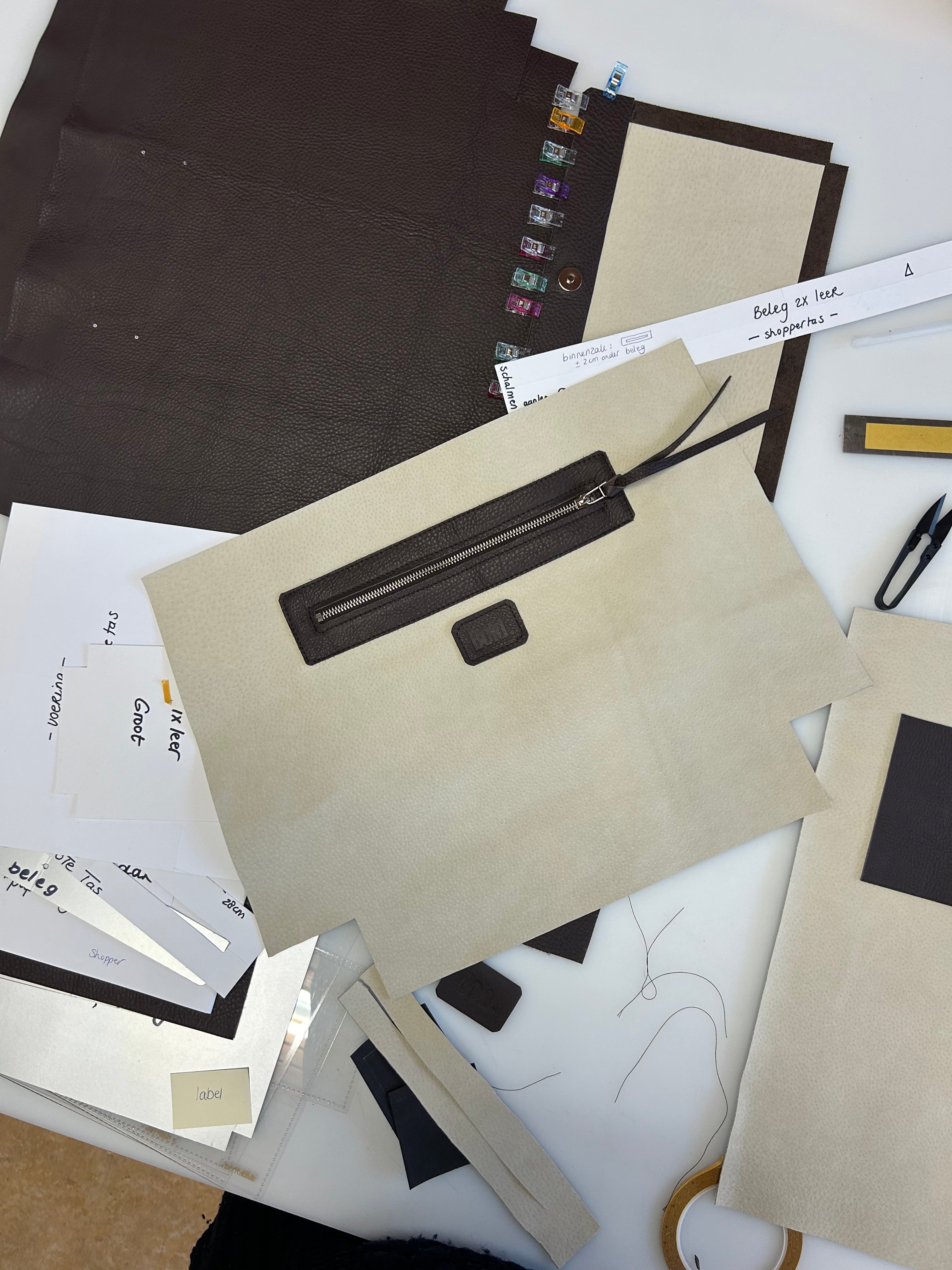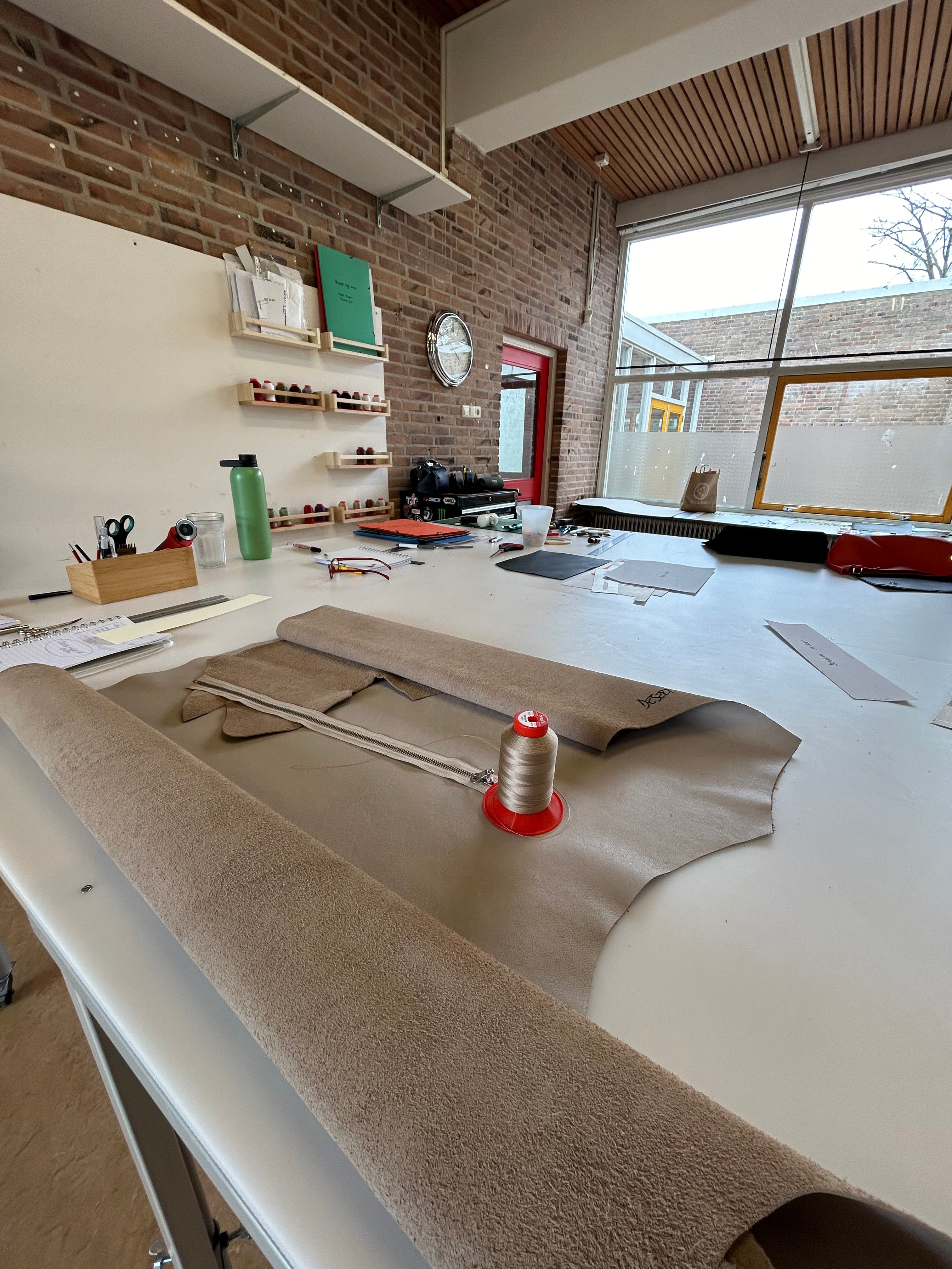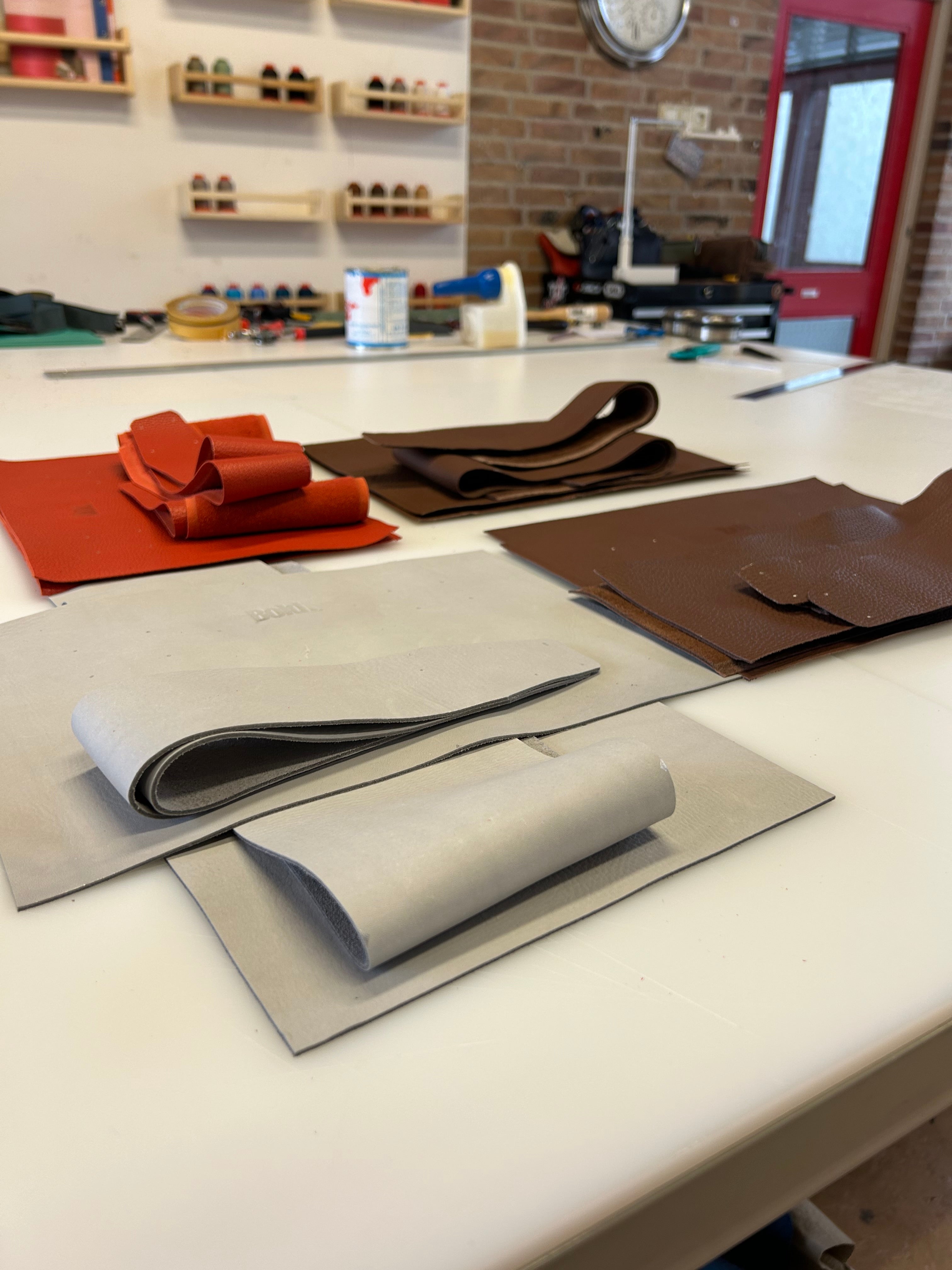 In mijn leeratelier in Alkmaar maak ik tassen en accessoires van restleer, zorgvuldig geselecteerd bij leerhandel "Echt Leer" in Langedijk